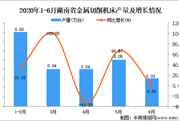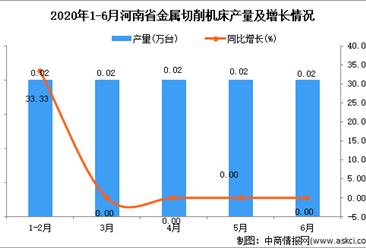 中商情报网讯:据中商产业研究院数据库显示,2020年6月河南省金属切削机床产量波动幅度较小,2020年6月河南省金属切削机床产量为0.02万台,同比持平。2020年1-6月河南省金...【详情】