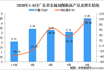 中商情报网讯:据中商产业研究院数据库显示,2020年6月广东省金属切削机床产量增长,2020年6月广东省金属切削机床产量为0.45万台,同比增长95.65%。2020年1-6月广东省金属...【详情】