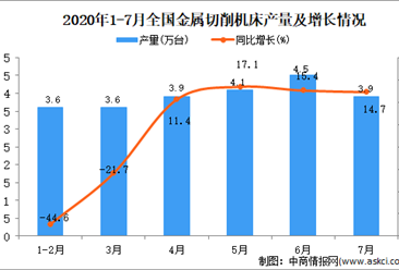 中商情报网讯:据中商产业研究院数据库显示,2020年7月全国金属切削机床产量下降,2020年7月全国金属切削机床产量为3.9万台,同比增长14.7%。2020年1-7月全国金属切削机床...【详情】