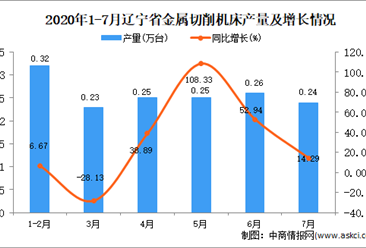 中商情报网讯:据中商产业研究院数据库显示,2020年7月辽宁省金属切削机床产量下降,2020年7月辽宁省金属切削机床产量为0.24万台,同比增长14.29%。2020年1-7月辽宁省金属...【详情】