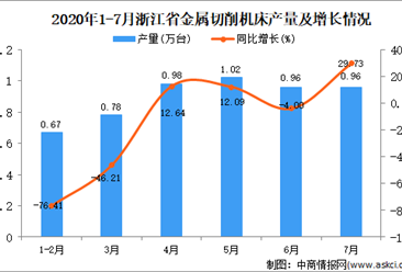 中商情报网讯:据中商产业研究院数据库显示,2020年7月浙江省金属切削机床产量波动幅度较小,2020年7月浙江省金属切削机床产量为0.96万台,同比增长29.73%。2020年1-7月浙...【详情】