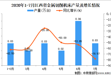 中商情报网讯:据中商产业研究院数据库显示,2020年7月江西省金属切削机床产量下降,2020年7月江西省金属切削机床产量为0.03万台,同比下降78.57%。2020年1-7月江西省金属...【详情】