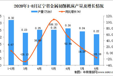中商情报网讯:据中商产业研究院数据库显示,2020年8月辽宁省金属切削机床产量下降,2020年8月辽宁省金属切削机床产量为0.22万台,同比下降15.38%。2020年1-8月辽宁省金属...【详情】
