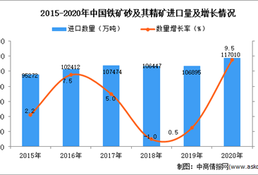 中商情报网讯:据中商产业研究院数据库显示,2020年12月中国铁矿砂及其精矿进口量下降,2020年12月中国铁矿砂及其精矿进口量为9674.6万吨,同比下降4.5%。 数据来源:中...【详情】