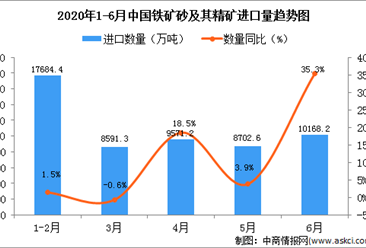 中商情报网讯:据中商产业研究院数据库显示,2020年6月中国铁矿砂及其精矿进口量增加,2020年6月中国铁矿砂及其精矿进口量为10168.2万吨,同比增长35.3%。 数据...【详情】