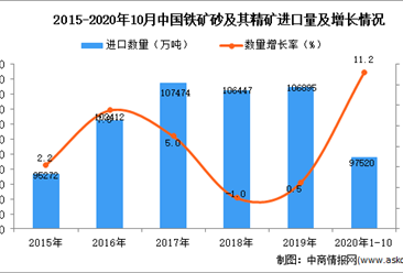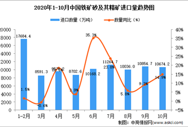 中商情报网讯:据中商产业研究院数据库显示,2020年1-10月中国铁矿砂及其精矿进口量上升,2020年1-10月中国铁矿砂及其精矿进口量为97520万吨,同比增长11.2%。 数据来源...【详情】
