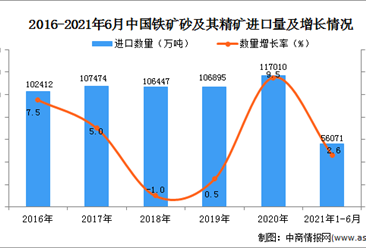中商情报网讯:据中商产业研究院数据库显示,2021年1-6月中国铜矿砂及其精矿进口量56071万吨,同比增长2.6%。 数据来源:中商产业研究院数据库 从金额方面来看,2021年1-...【详情】
