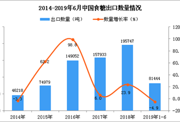 中商情报网讯:据中商产业研究院数据库显示,2019年1-2季度中国食糖出口量有小幅度增长,2019年1-6月中国食糖出口量为81444吨,同比下降4.9%。 数据来源:中商产业研究...【详情】