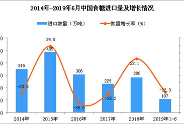 中商情报网讯:据中商产业研究院数据库显示,2019年1-2季度中国食糖进口量逐渐增长,2019年1-6月中国食糖进口量为107万吨,同比下降22.3%。 数据来源:中商产业研究院数...【详情】