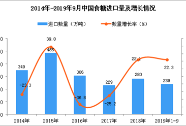 中商情报网讯:据中商产业研究院数据库显示,2015-2017年中国食糖进口量有所下降,2018年中国食糖进口量增长;2019年1-3季度中国食糖进口量为239万吨,同比增长22.3%。 ...【详情】