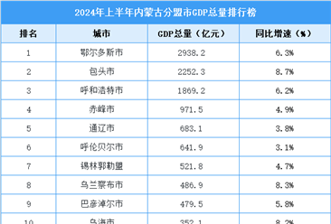 中商情报网讯:根据地区生产总值统一核算结果,2024年内蒙古全区地区生产总值26314.6亿元,按不变价格计算,比上年增长5.8%。 其中,鄂尔多斯市GDP总量最高,达6363.03亿...【详情】